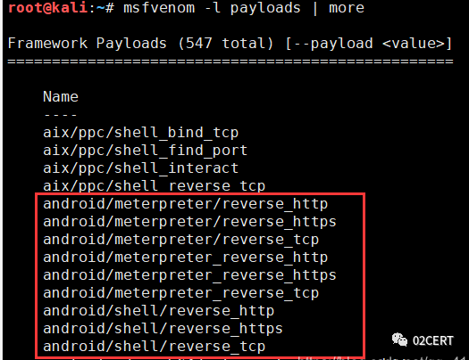 一、查看Metasploit工具中可以在Android系统下使用的payload类型