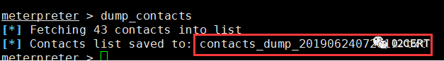 可以看到或得目标手机中的43位联系人方式,并存在“contacts_dump_20190624072811.txt”文件中