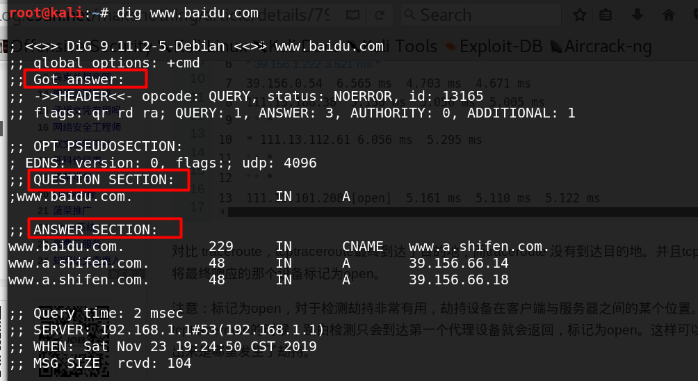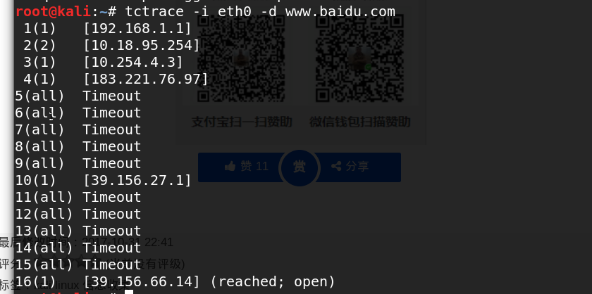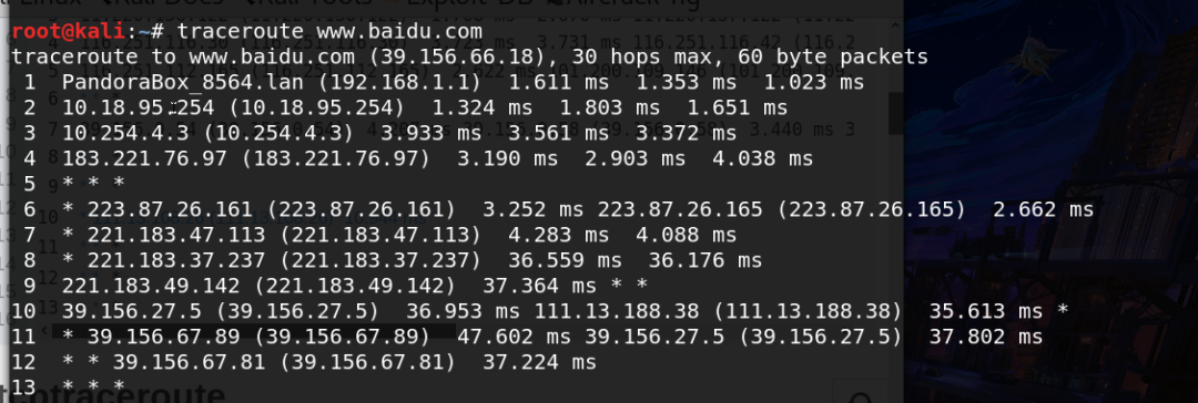 网络路由信息可以帮助测试人员了解自己的主机到目标主机之间的网络通信路径,进而理解目标主机的网络情况,保护目标主机的防火墙信息,往往也暗藏在路由信息里
