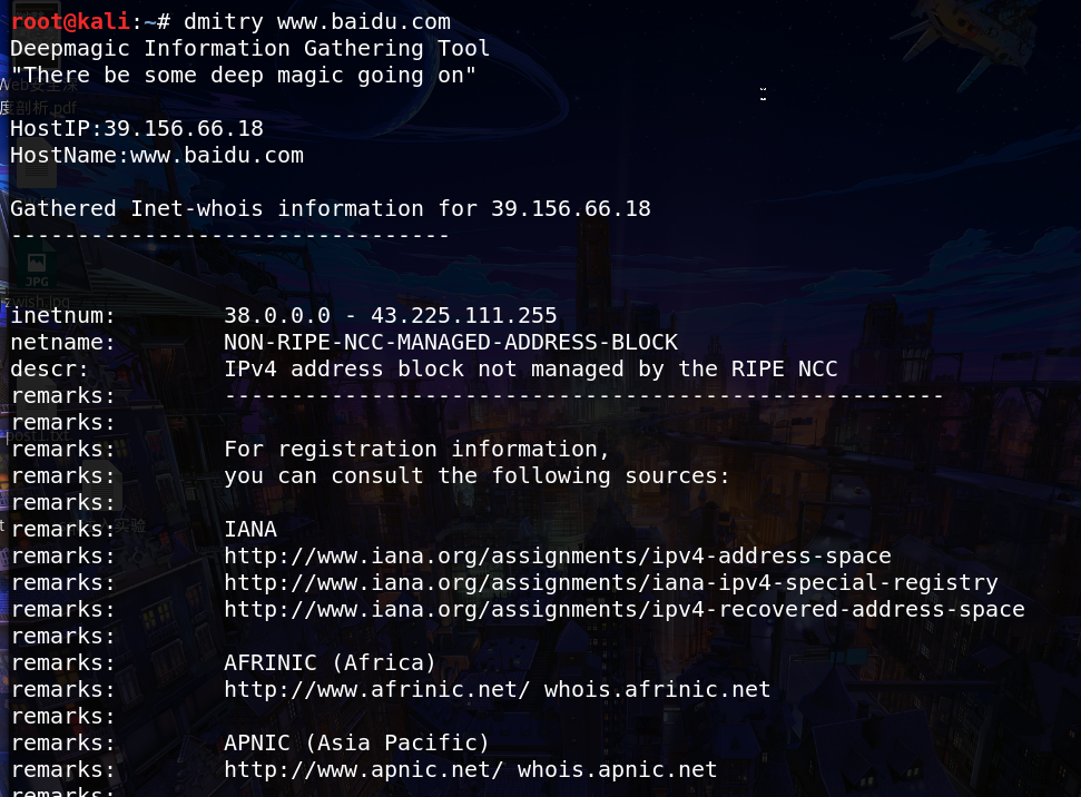 DMitry(Deepmagic Information Gathering Tool)是一个一体化的信息收集工具。它可以用来收集以下信息:
