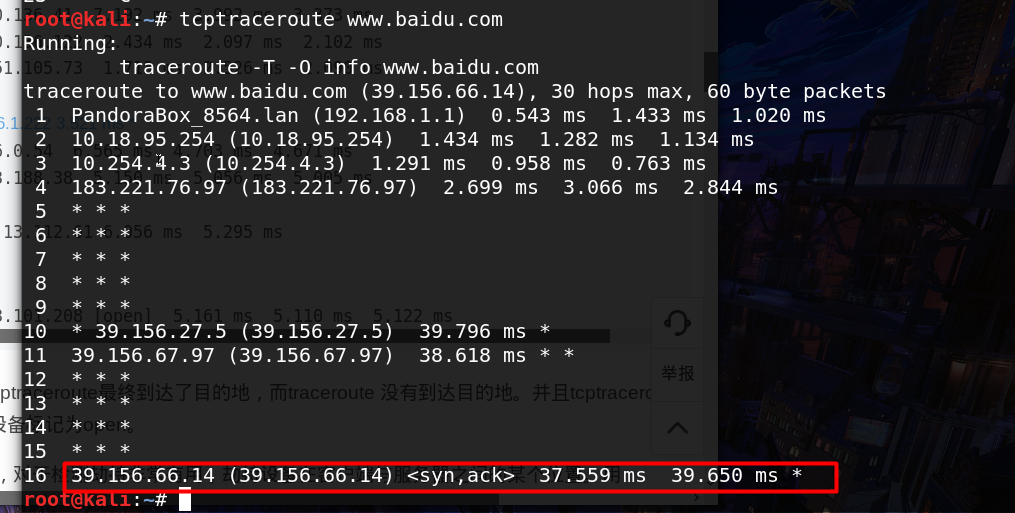tcptraceroute最终到达了目的地,而traceroute 没有到达目的地。