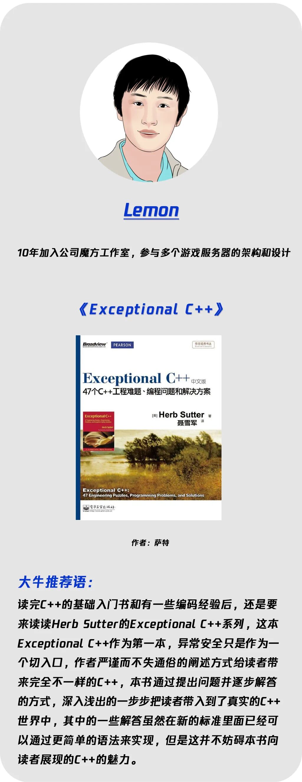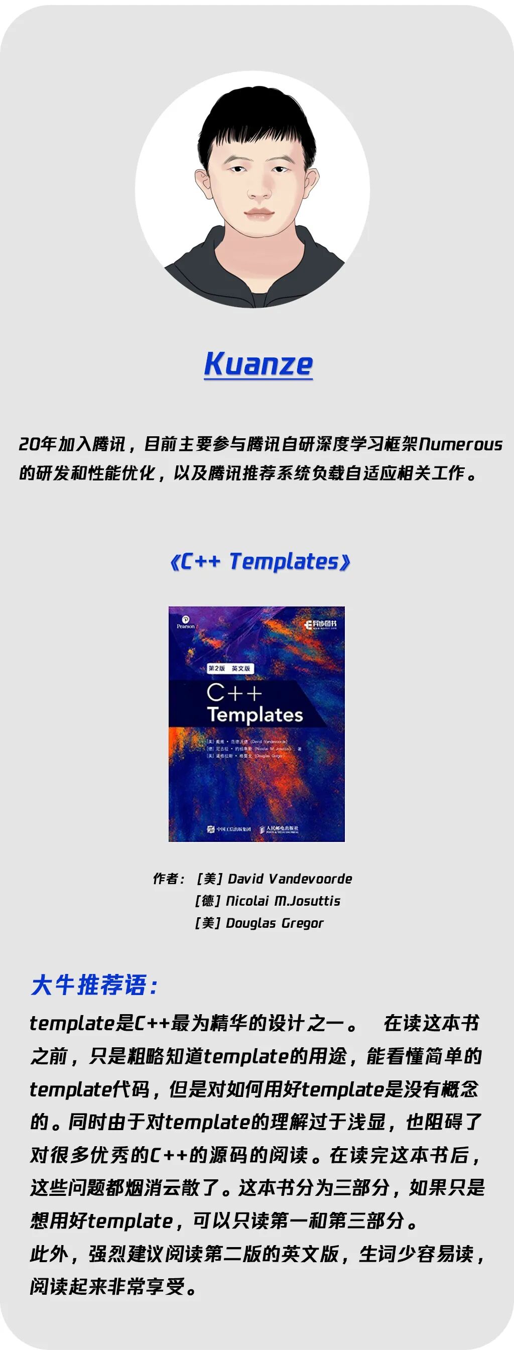 本期《大牛书单》,我们就请来了几位鹅厂同事,为大家推荐一些C++相关的书籍,一起多读书多进步。