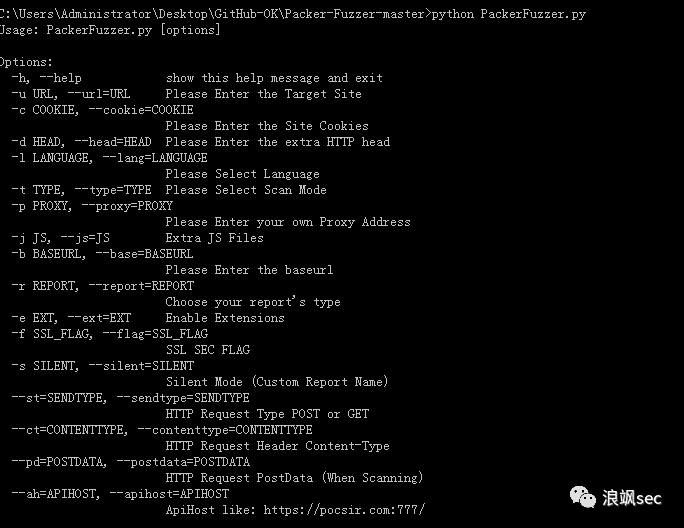 您可以使用python3 PackerFuzzer.py [options]命令来运行本工具,options内容表述如下: