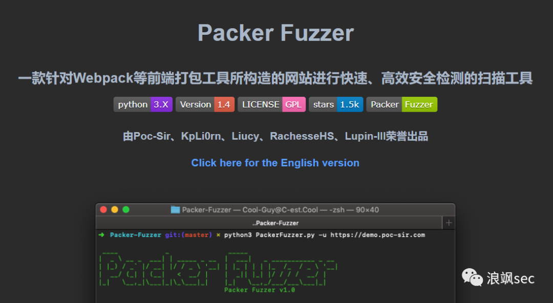 关注浪飒sec回复Packer-Fuzzer,即可获取