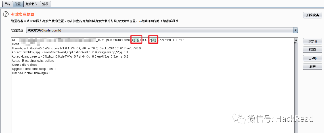 尝试用burpsuite的clusterboom模式对database进行爆破