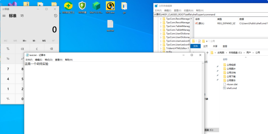 双击执行txt后, c:\tools\shell.cmd将启动calc以及一个带有 test.txt文件作为参数。