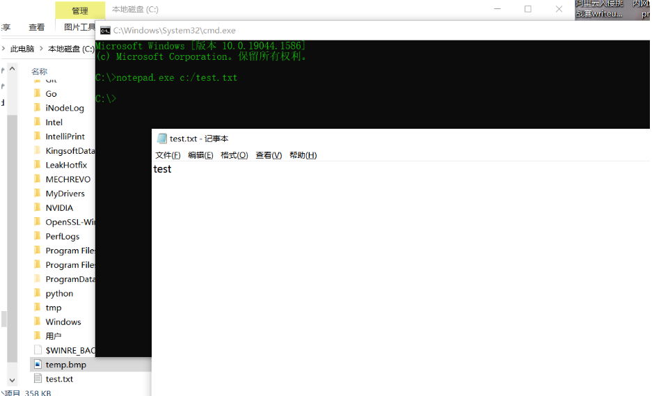 创建一个恶意文件(这里用calc.exe代替),当用户尝试打开良性文件 test.txt 时,我们希望执行该恶意文件。