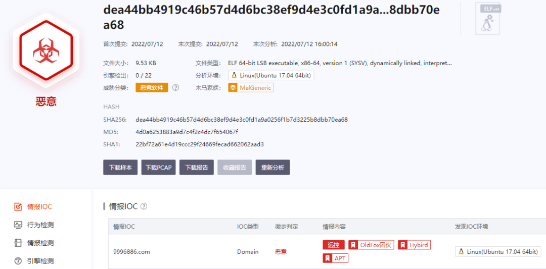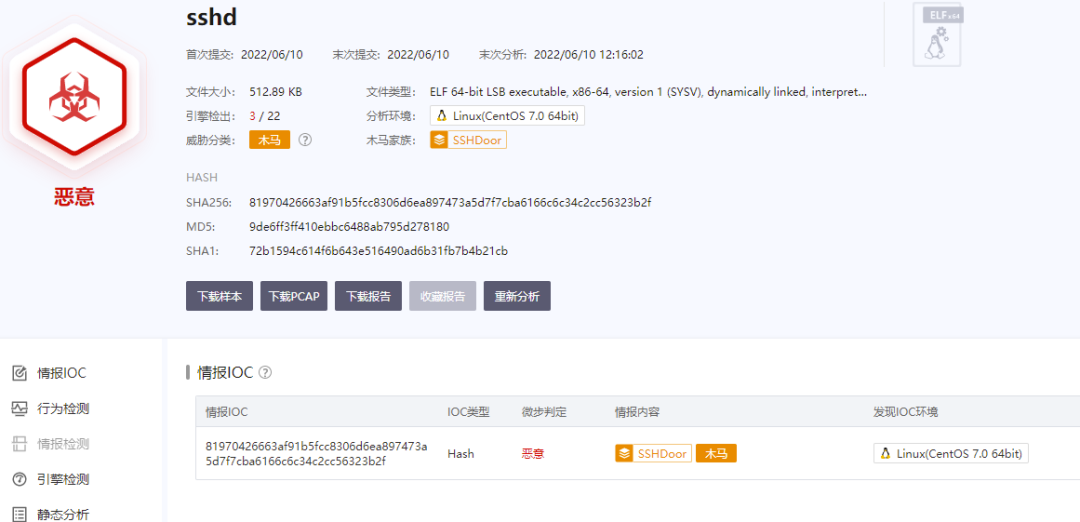 微步云沙箱支持检测“老狐狸”样本及sshd后门程序。