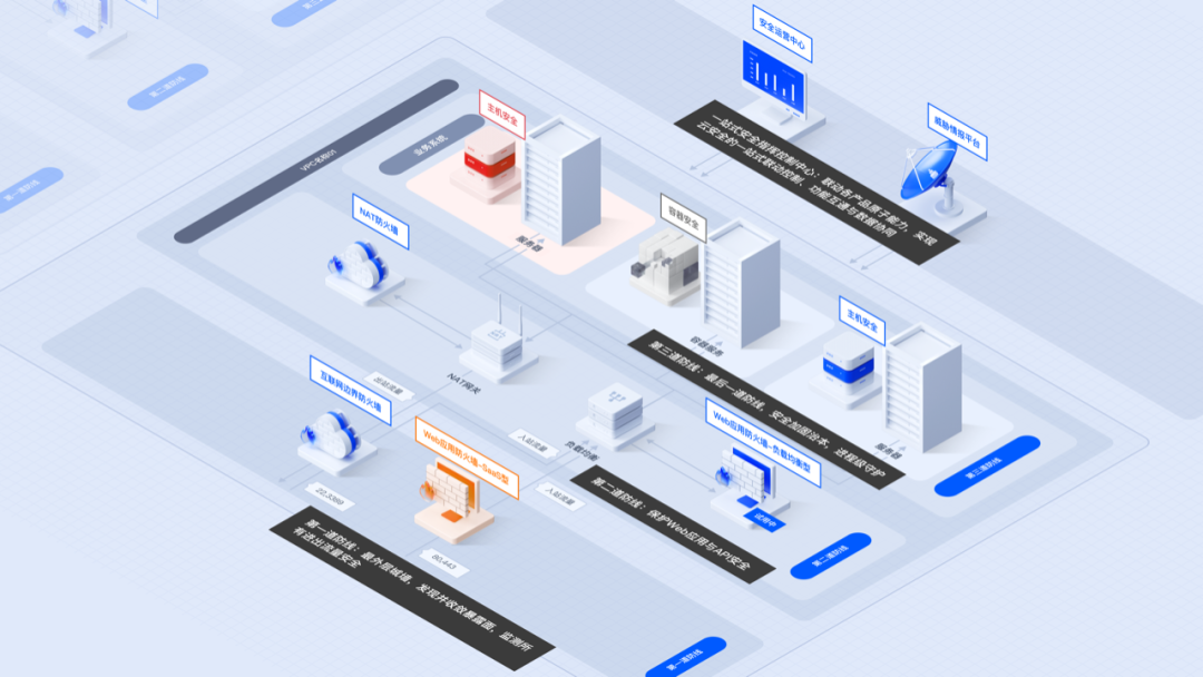 1、第一道防线——云防火墙:作为最外层城墙,覆盖用户云上业务的所有流量边界,提供访问控制、入侵防御、身份认证等安全能力,并集成漏洞扫描与网络蜜罐。在重保场景下,可自动梳理云上资产、发现并收敛暴露面。借助网络蜜罐诱捕与溯源反制、以及基于身份认证的访问控制能力应对未知攻击,让攻击者无处藏匿;