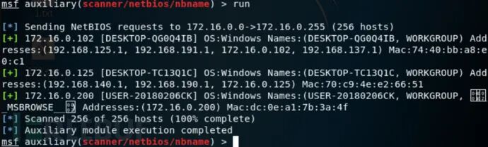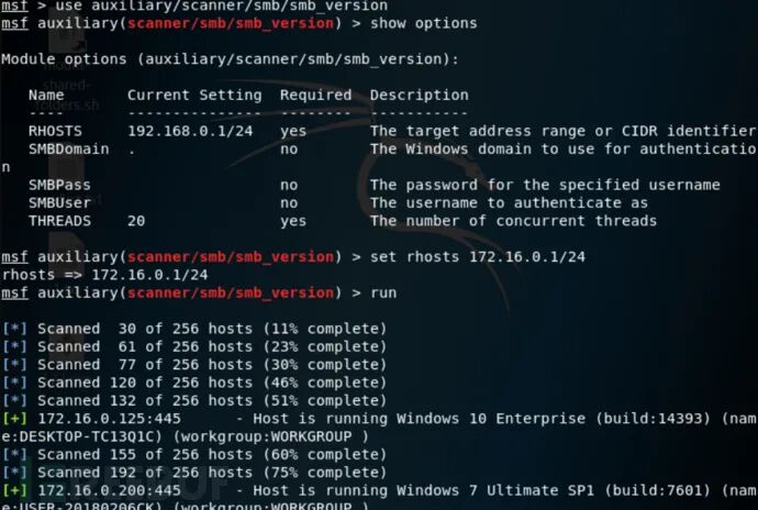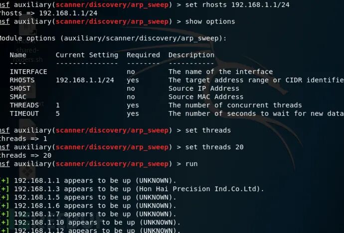 msf扫描 use auxiliary/scanner/discovery/arp_sweep