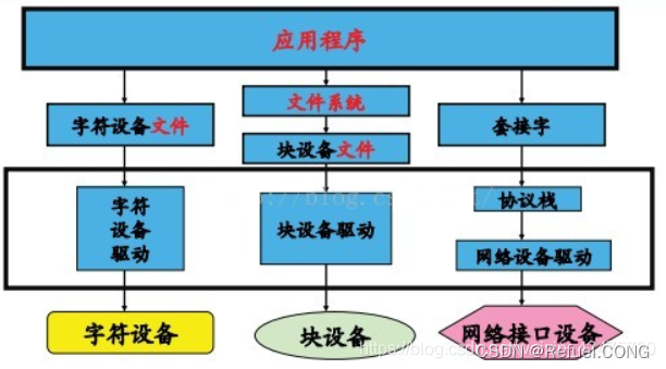 设备分类:linux系统将设备分为3类:字符设备、块设备、网络设备。