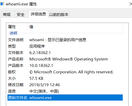 在后渗透的阶段,使用run或shell命令运行whoami.exe、net.exe、tasklist等程序进行信息收集,我们可以通过对相关程序的原始文件名进行监控,从而知道系统中的可疑程序。
