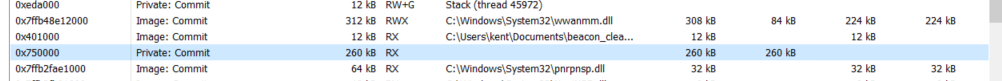 在内存方面我们可以注意进程中所申请的内存是否没关联到模块、内存属性是否为RWX,而cobaltstrike的profile选项中能设置通过set userwx设置内存属性: