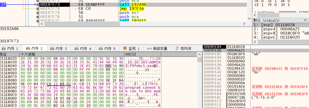 将文件保存在目标ip的ADMIN\$下,名字随机为f9febc5.exe