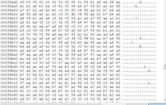 当obfuscate设置为true时,能混淆dll的导入表、区段名等信息,使得根据导入表匹配的规则失效,0x00039ad8开始是被混淆的导入表: