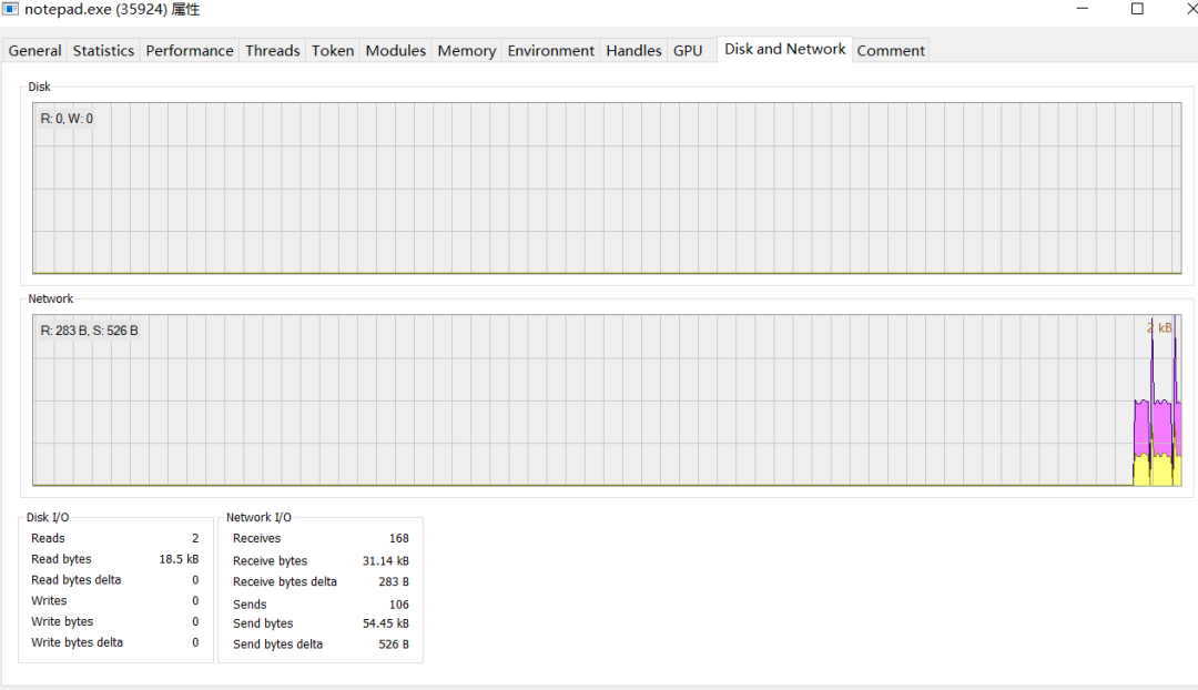 如notepad.exe进程存在网络连接: