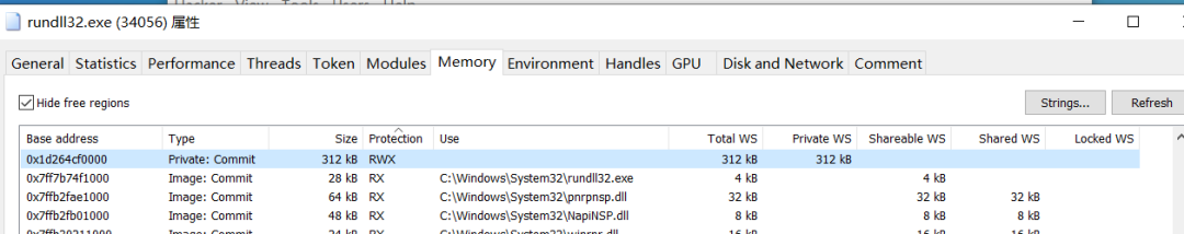 所以我们则可以关注进程中内存属性为RWX的区域进行重点的检测对象。