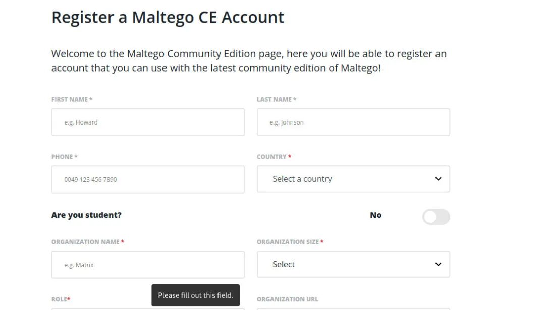 然后会出现一个登录界面,如下图所示,如果用户第一次使用Maltego,需要注册一个账户,单击红框内的“register here”就会跳转到另一个界面。