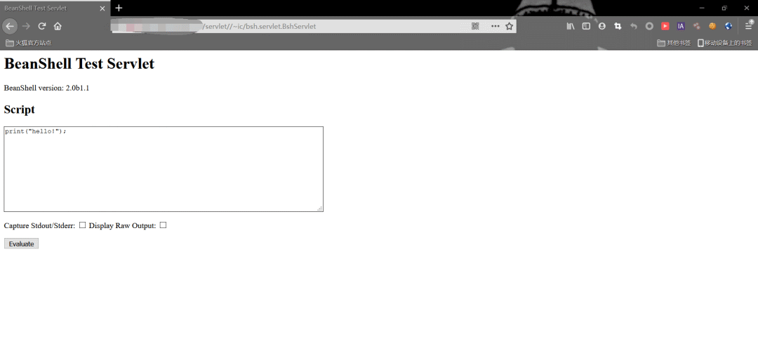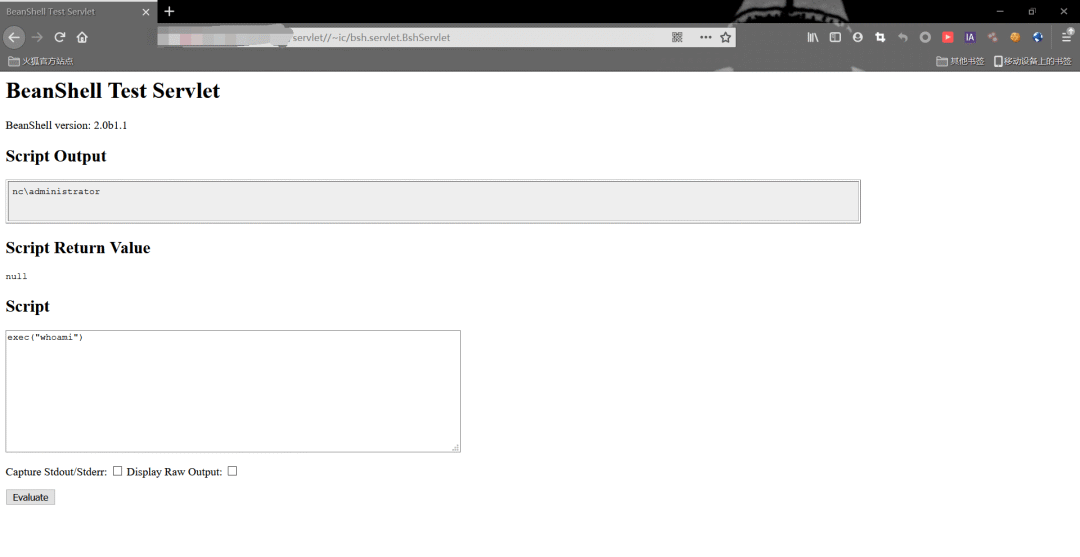 http://xxx.xxxx.xxxx.xxxx/servlet//~ic/bsh.servlet.BshServlet文本框里可以命令执行