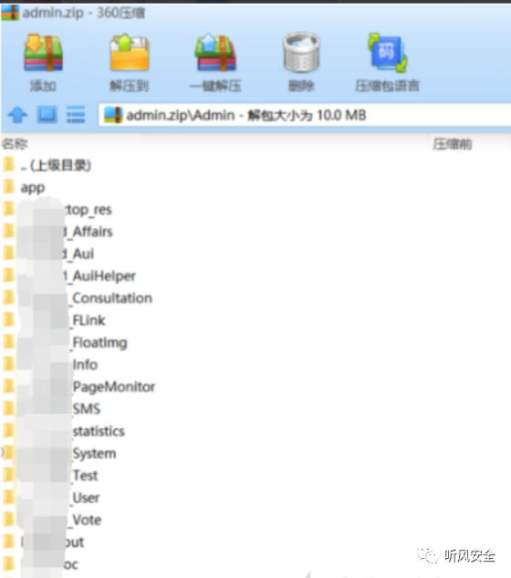 访问http://xxx/admin.zip,此url存在网站源码任意下载,该漏洞往往会导致服务器整站源代码或者部分页面的源代码被下载,利用。源代码中所包含的各类敏感信息,如服务器数据库连接信息,服务器配置信息等会因此而泄露,造成巨大的损失。被泄露的源代码还可能会被用于代码审计,进一步利用而对整个系统的安全埋下隐患。