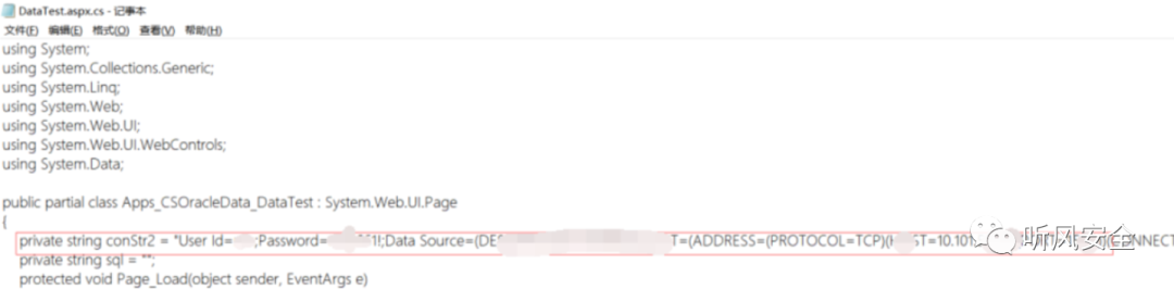 审计敏感文件,发现数据库配置信息,数据库账号密码泄露User Id=xxx Password=xxx