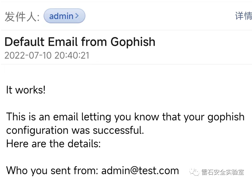 这次演练我们使用了gophish作为钓鱼管理的系统,通过域名服务商自带的邮件服务进行发信,准备了简单的通知和一个密码页面来进行。最后效果很好,获得了客户的好评。