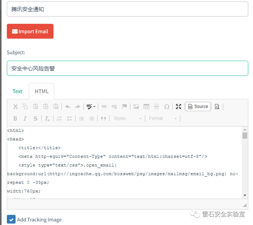 通过Email Templates选项卡可以配置钓鱼邮件模板,建议使用html文件编辑钓鱼,或者通过导出邮件原文导入。其自动会把邮件中链接指向修改为服务器的钓鱼页面