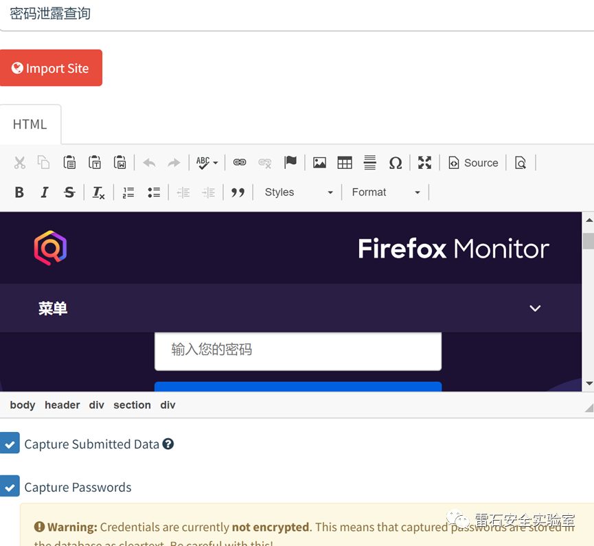 注意勾选Capture Submitted Data选项,勾选后可以选择密码记录、重定向配置