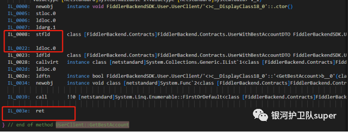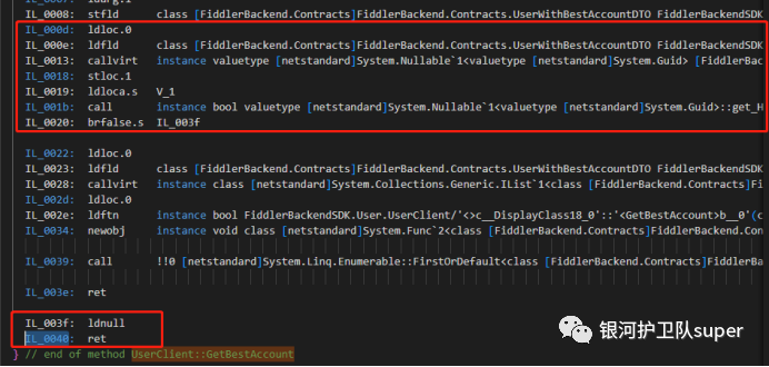 搜索UserClient::GetBestAccount,删除代码中IL_000d到IL_0020和IL_003f、IL_0040这几句