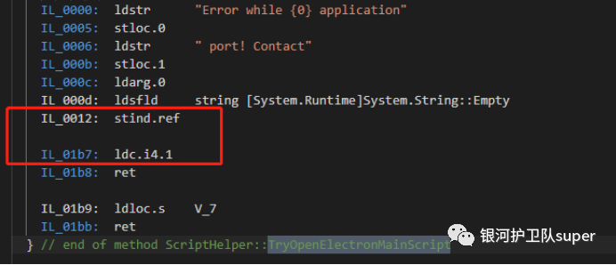 4、继续在Fiddler.WebUi.il文件中搜索TryOpenElectronMainScript函数,删除代码IL_0012到IL_01b7的中间部分