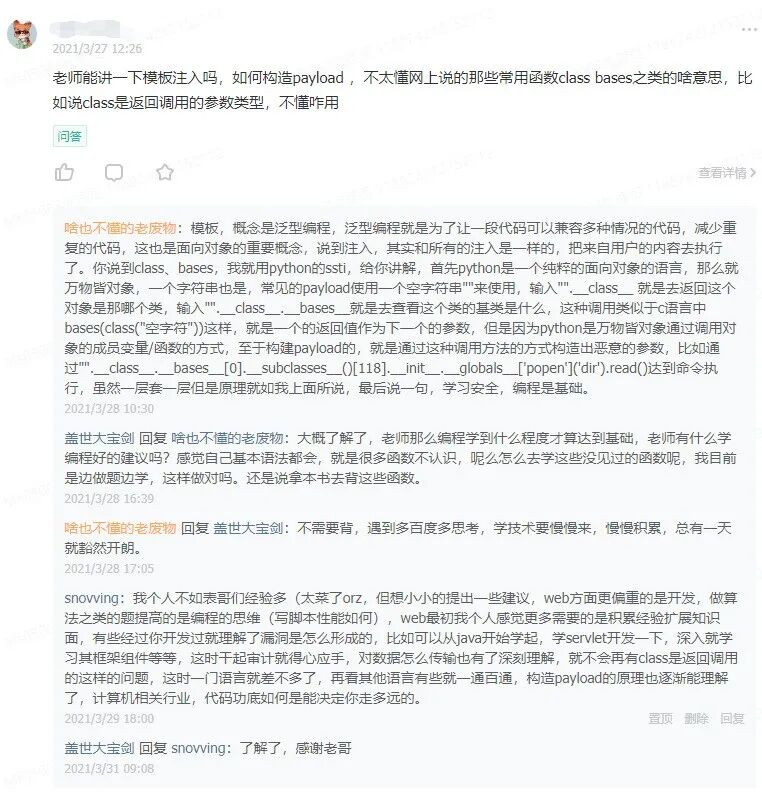参与问答的同时也是对自己知识的一次梳理与巩固。接下来分享几篇星球小伙们的优质问答: