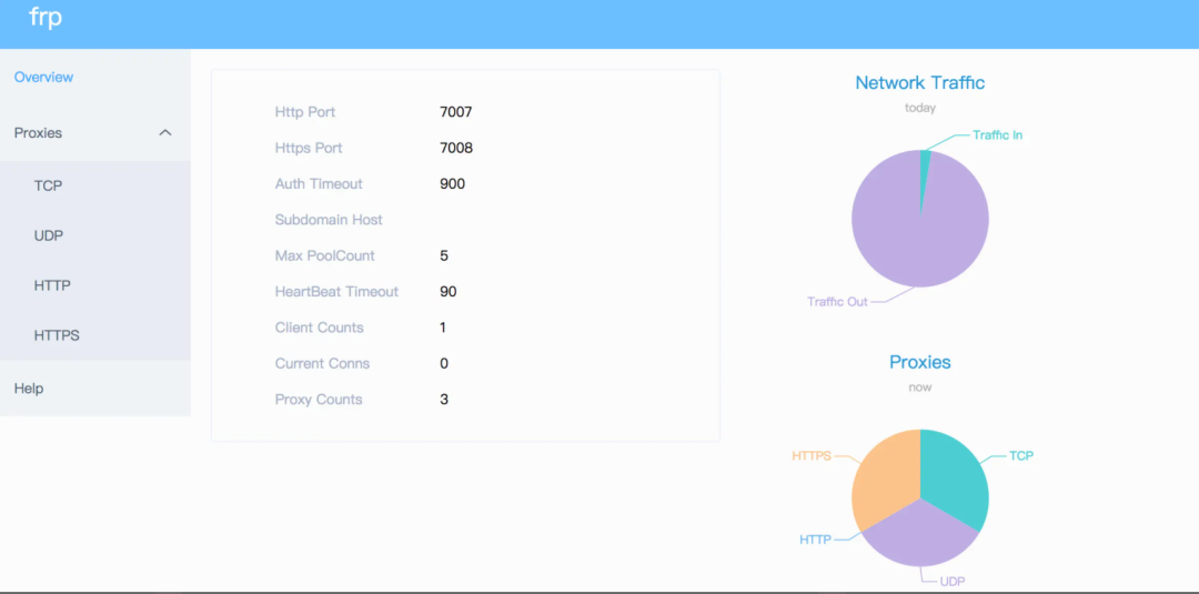 通过浏览器查看 frp 的状态以及代理统计信息展示。