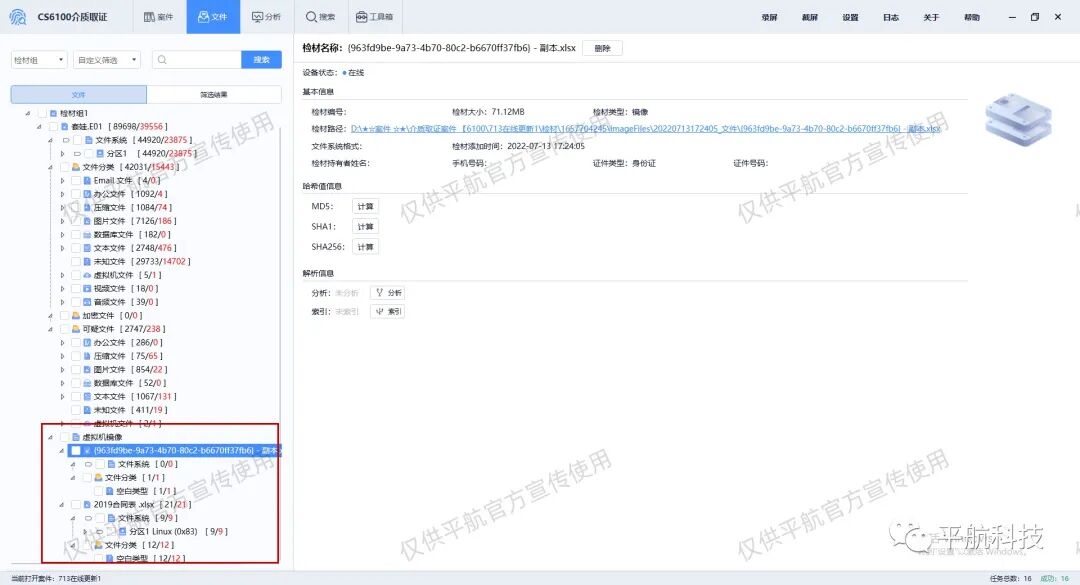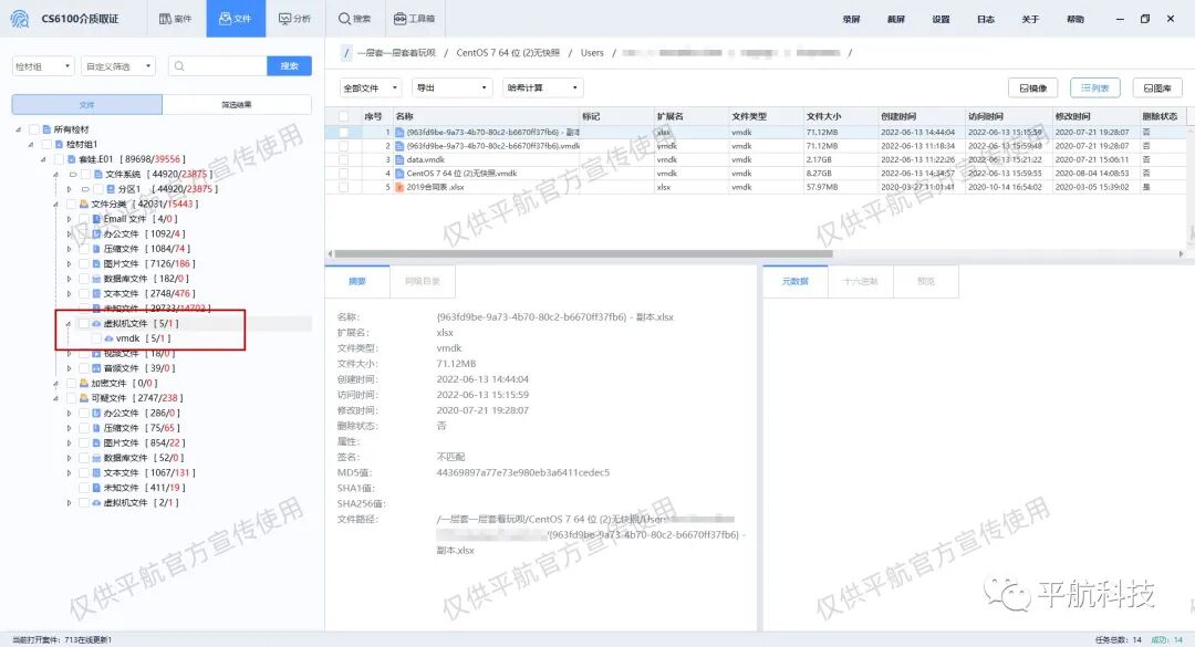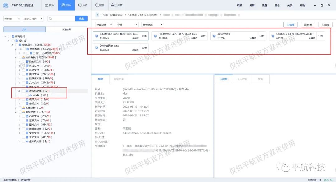 为了避免此类因“嵌套”镜像带来的繁琐取证操作,提升取证效率,平航介质取证软件CS6100更新上线了针对虚拟机、模拟器的“套娃”镜像解析功能。
