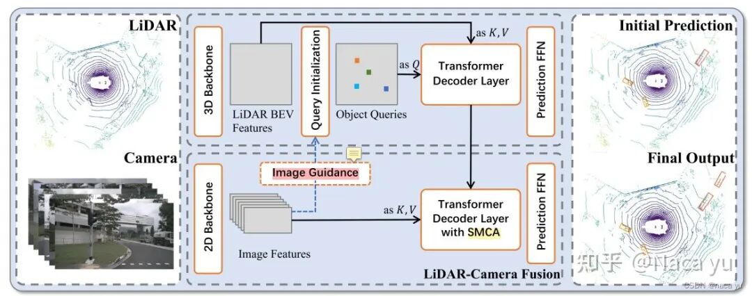 第一种方式的关键在于两种模态的对齐,lidar常作为Q融合图像特征,这种不仅会存在由于lidar特征稀疏导致的查询遗漏问题,还有由于lidar密集致使多个q映射到同一目标的问题。