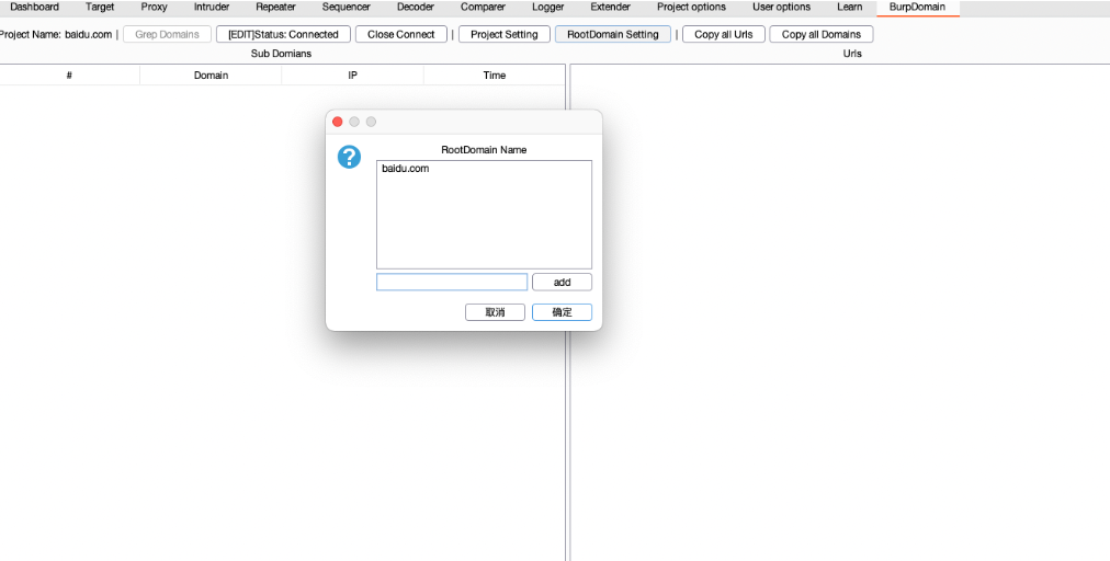 点击RootDomain Setting按钮,将需要的爬取的根域名都添加上