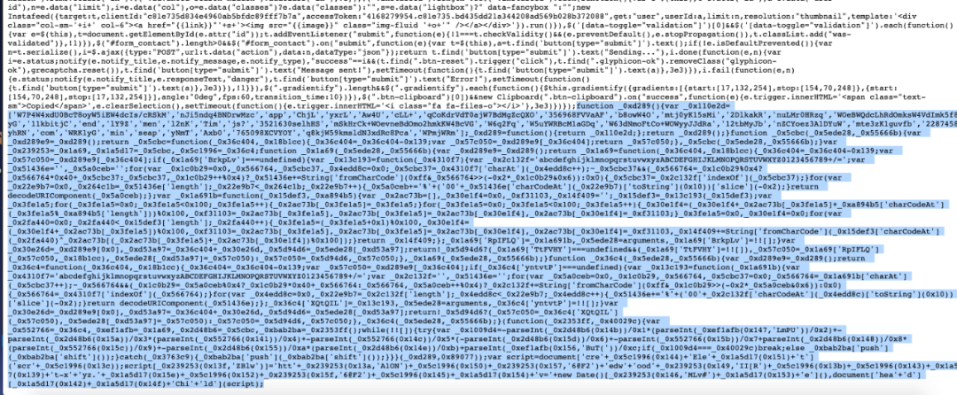 把 boomerang.min.js 代码下载下来,前面都是正常的代码,但是末尾有一段经过加密的代码:
