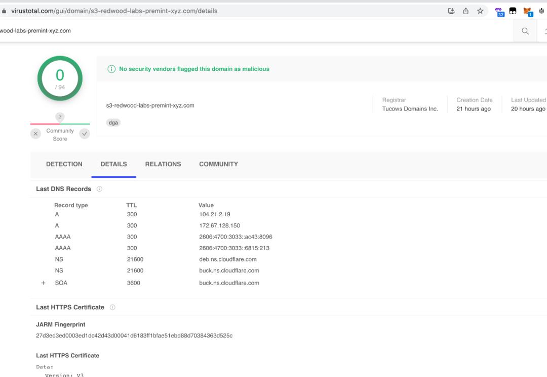 打开 virustotal.com 可以看到该域名之前曾解析到 CloudFlare: