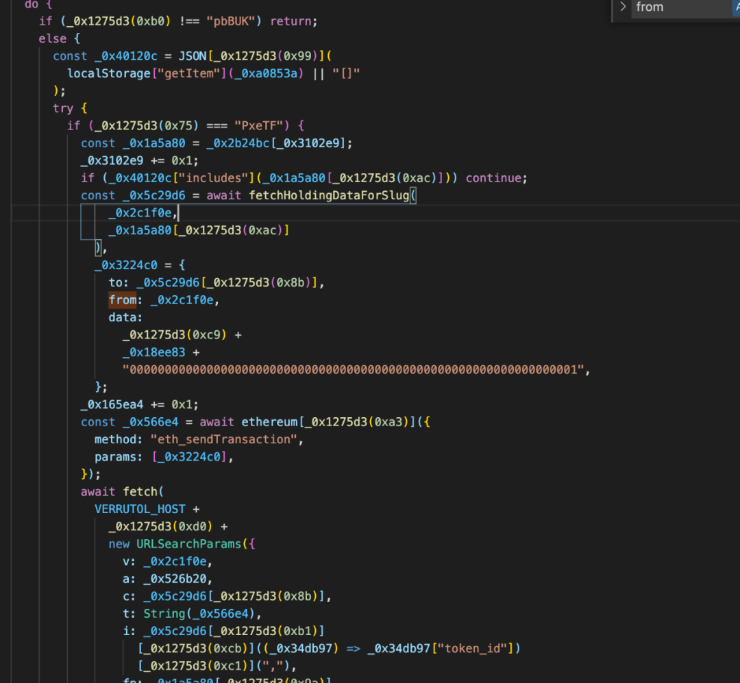 另外这种代码变量名加密成 _0xd289 _0x 开头的方式,我们曾经在 play-otherside.org,thesaudisnfts.xyz 这些钓鱼网站也见到过。