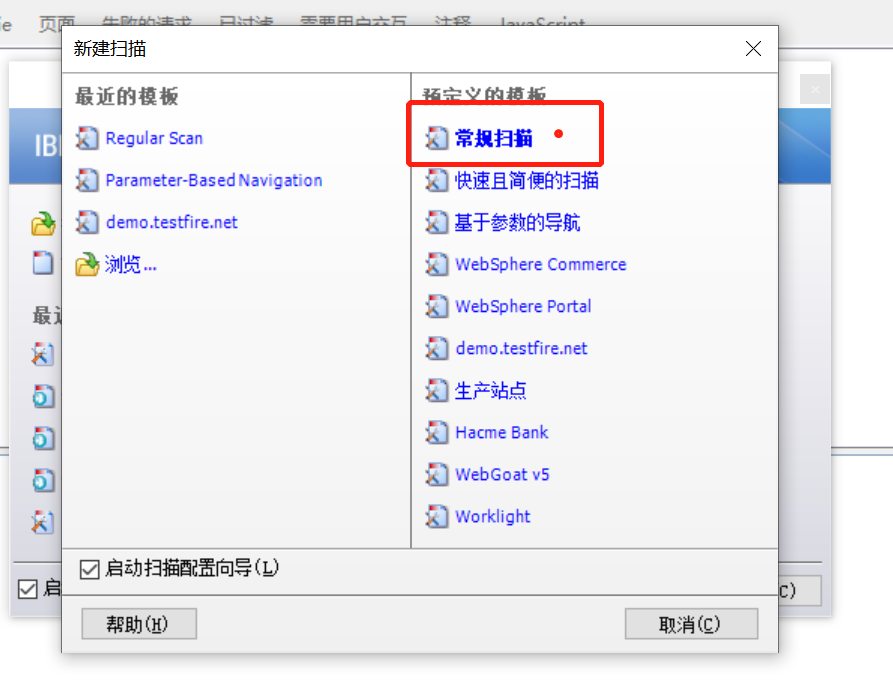 1.进入软件主界面—>选择创建新的扫描:以具体某一项目为案例2. 选择扫码模板,默认选择常规扫码即可