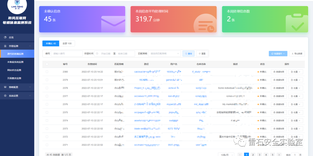 上述此类高风险、高隐患的互联网资产信息暴露情况,无法依赖传统安全防护设备解决,目前市场上也还没有专门针对源码泄露、企业未备案排查的产品,部分源代码扫描类工具只能用于扫描与发现,无法实现对敏感信息暴露事件的实时监测,亦无法对历史事件进行有效的管理及重复过滤。假如某工作人员今天根据某个关键字词扫描出2万余起疑似事件,该名人员花一个月的时间完成全部的事件分析后再进行扫描仍然是2万余起,宛如大海捞针,极大增加了人力负担与时间成本。