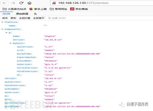 直接输入地址 http://your-ip:2375/version。若能访问,证明存在未授权访问漏洞。