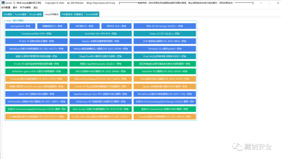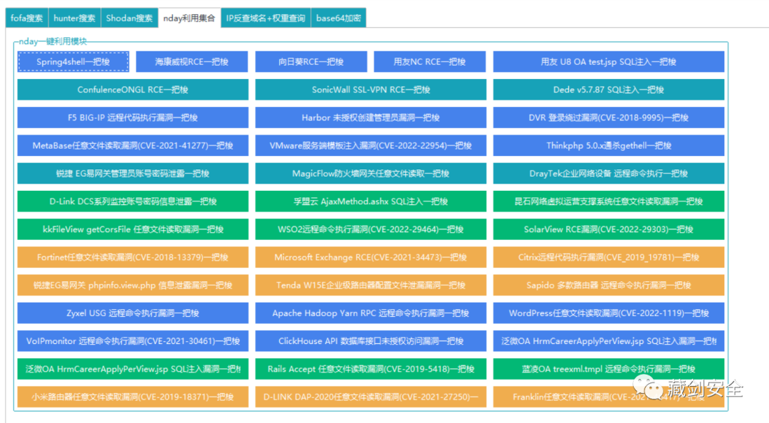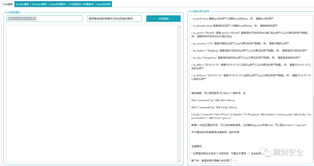关注“藏剑安全”微信公众号,回复“工具”可获得下载链接!请勿用于非法测试!