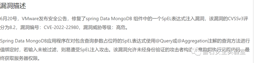 10.【漏洞分析】CVE-2022-22980 Spring Data MongoDB SpEL表达式注入漏洞分析