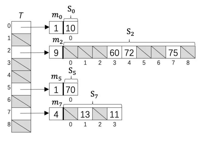 compact 压缩:给定一系列整数 S,已知 S 中最大的整数 x 需要使用 y 个 bit 表示,我们可以将所有的整数都通过固定 y bit 来表示而不牺牲精度和访问时间。