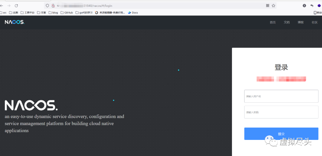 32710端口是主要渗透目标,只有一个登陆点。31848端口是一个nacos的服务其他端口都是404,或者就是白板