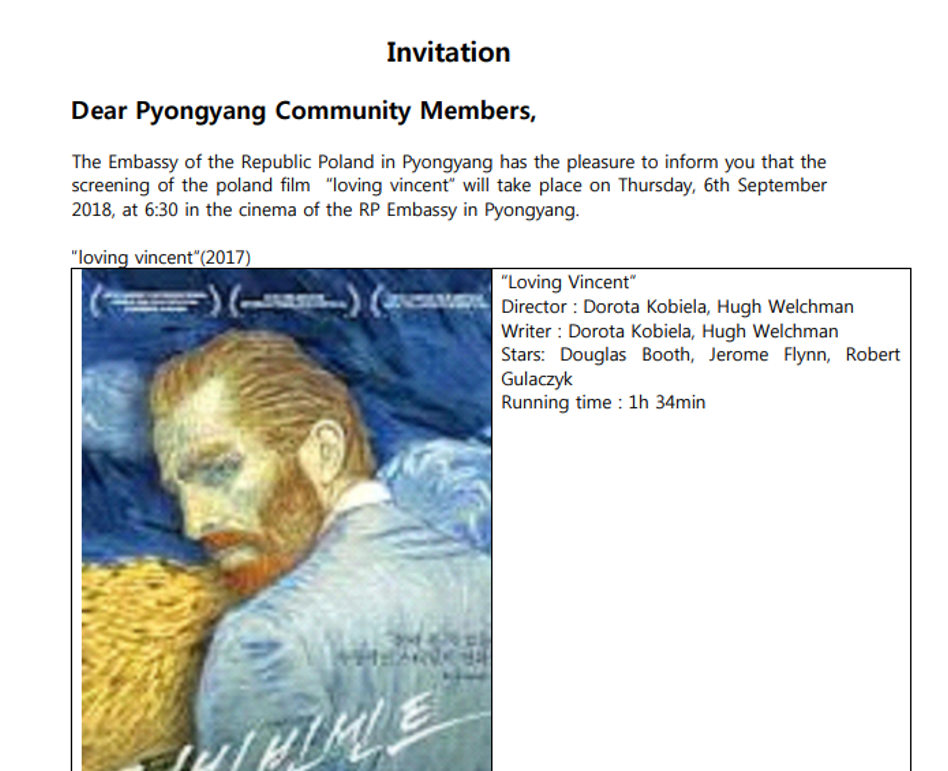 返回的PDF内容为波兰驻平壤大使馆邀请函: