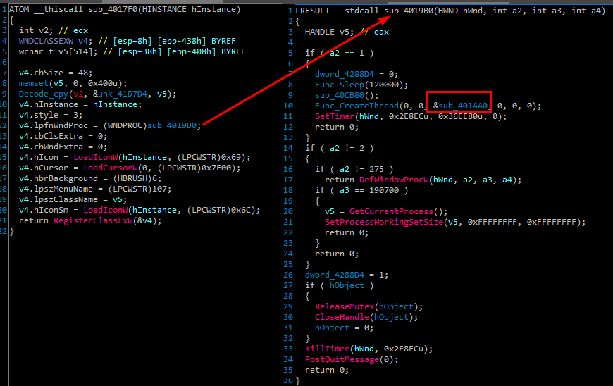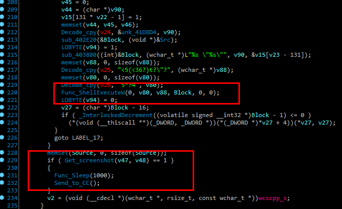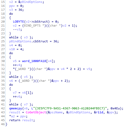 360a.exe基于开源putty项目,将main函数里正常代码替换为恶意代码,主要功能为解密释放loader程序SndVolSSO.dll和远控主程序svctask.exe,使用Bypass UAC技术通过iFileOperation的方式将SndVolSSO.dll拷贝到Windows目录下,实现explorer.exe劫持持久化。