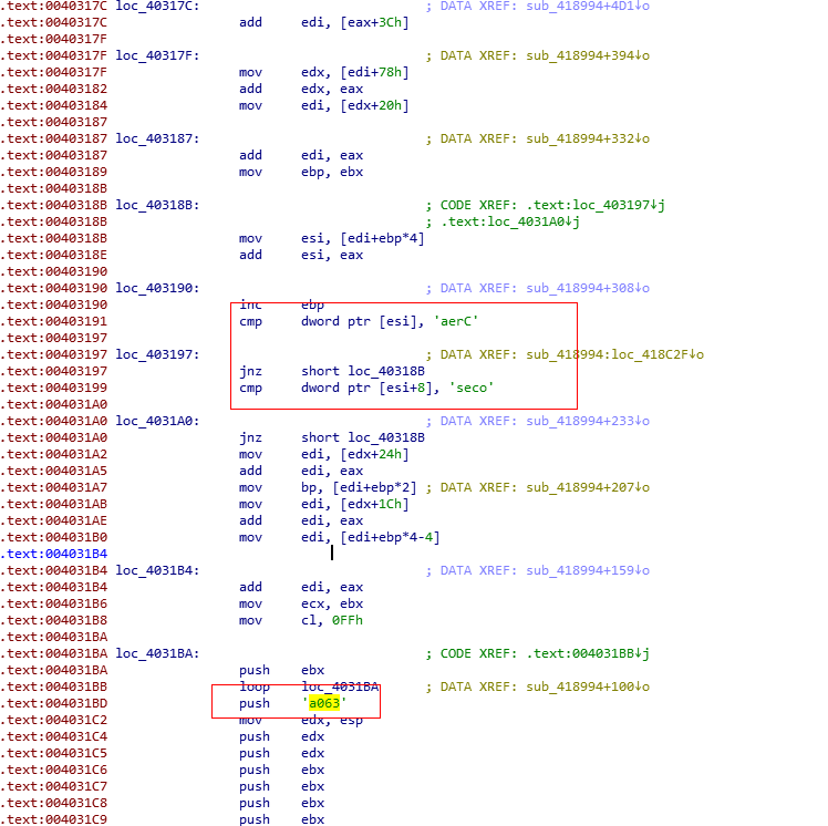 被patch的函数会获取CreateProcessA的地址,并运行起来360a.exe。