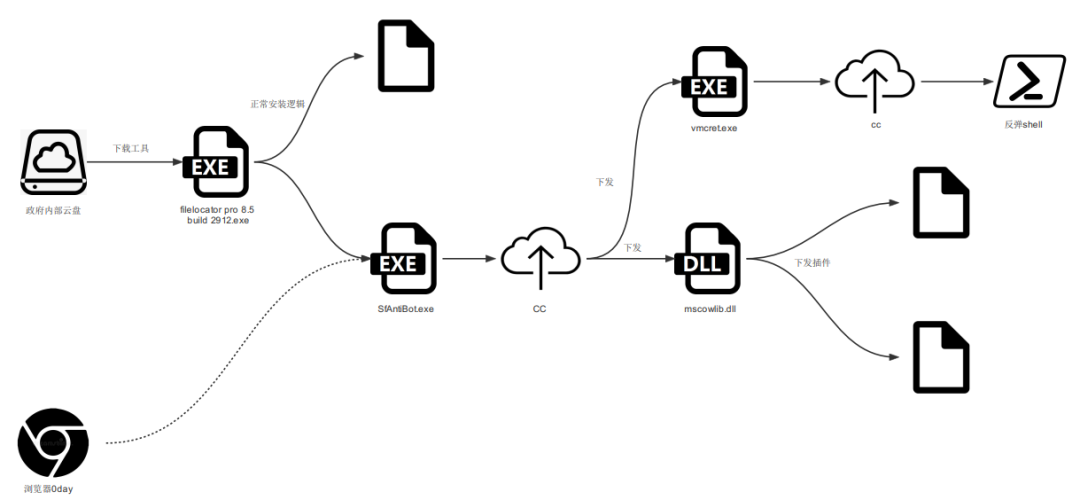 在2021年攻击者除了使用浏览器漏洞外还使用了一种全新的攻击模式,即入侵内网OA系统,替换OA系统网盘上的常用工具,进行水坑攻击。
