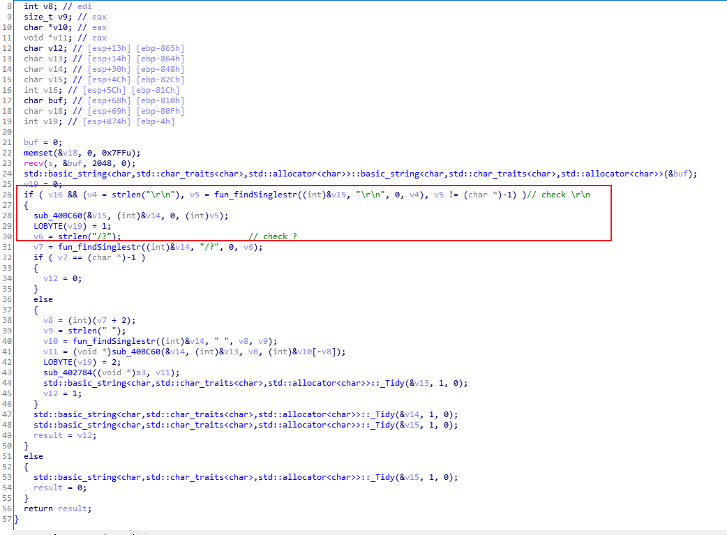 值得一提的是recv后会通过空格对buffer进行分割,所有空格被格式化,导致无法顺利执行EXP,通过分析发现在channel转为msg_program_channel时,会在fun_setStr中处理对应的数据。
